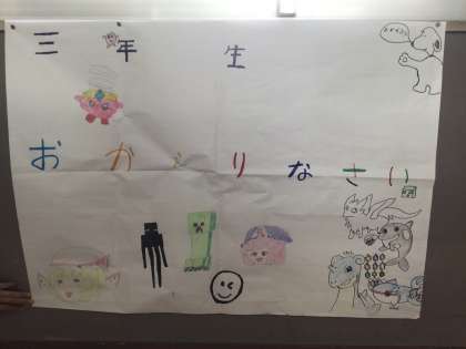 修学旅行から帰った3年生にメッセージが廊下に掲示されていました。