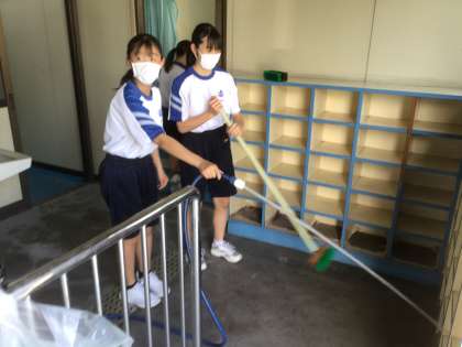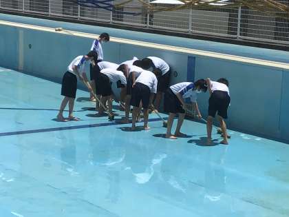 体育の時間にプール掃除をしていました。