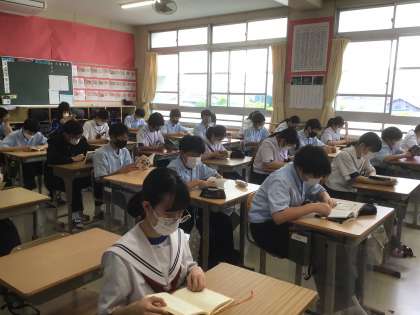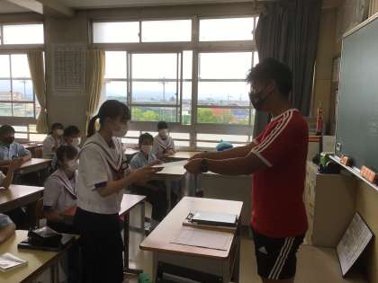 途中、5分前着席の取組について、学年主任の先生から表彰がありました。