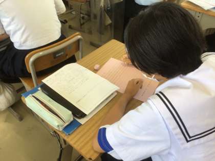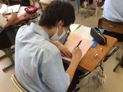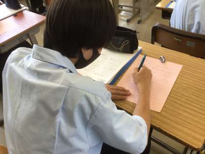 先週行った「職業人に学ぶ会」について振り返り、講師を務めてくださった方にお礼の手紙を書いていました。