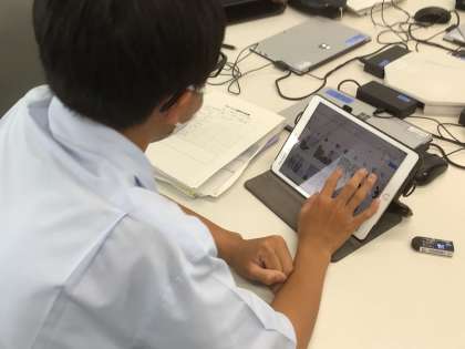 早速学習用タブレットで検索している生徒もいました。