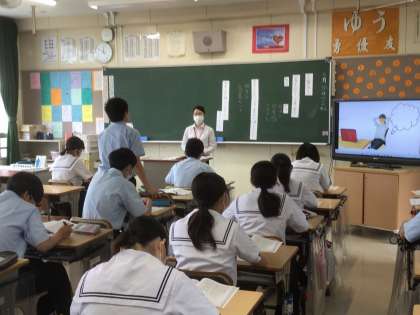 道徳の授業を教育実習生が行っていました。