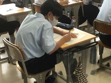 生徒たちは自分の考えをワークシートに書き込んでいました。