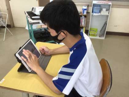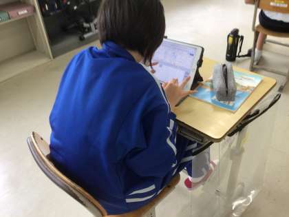 三河上郷駅から豊田市役所へ行く方法を学習用タブレットで調べていました。