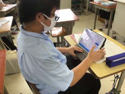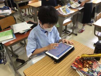 登校後、支度をすませて学習用タブレットに健康状態を入力します。