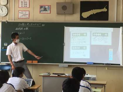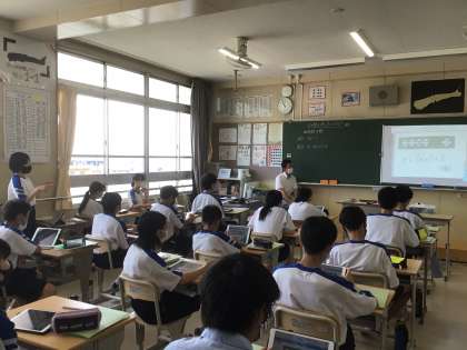 数学の時間、問題の考え方について学習用タブレットにまとめ、それをもとに話し合いをしていました。