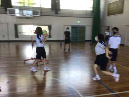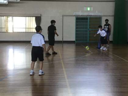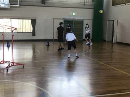 守備側は、とったボールを素早くカゴに入れて得点されるのをを防ぎます。