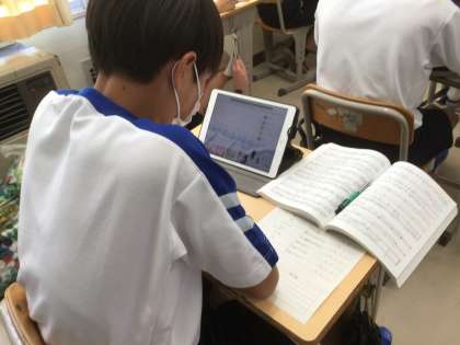 今日は曲を聴いて、クラスの合唱曲の候補を決めていました。