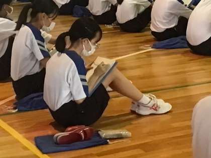 終了後に栄養教諭の先生と話したときに、生徒がメモをとりながら真剣に話を聞いてくれてうれしかったとおっしゃってくださいました。