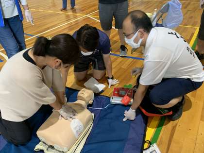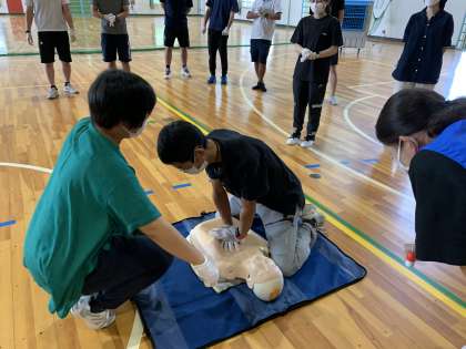 心臓マッサージに仕方、AEDの使い方などを学びました。