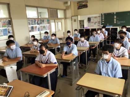 1限目は全校集会。リモートで開催のため、各クラスでお話を聞きました。いよいよ学校が始まります。みんなで頑張っていきましょう。