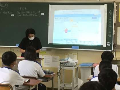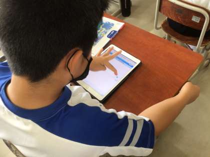 学習用タブレットのポジショニング機能を使い、自分や他の生徒の立ち位置をみながら考えを深めていきました。