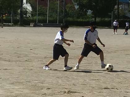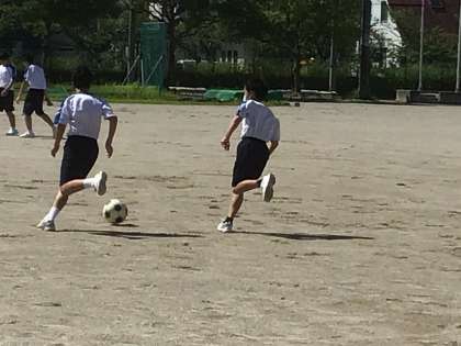 2年生は、体育でサッカーをしていました。