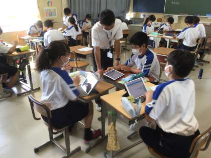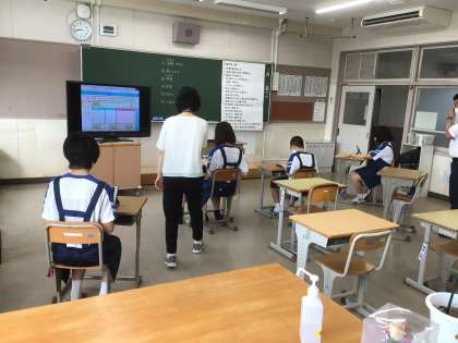 教育委員会の方が、授業の様子や学校の様子を見に来られました。