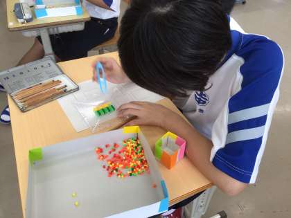 9/16 1・2学級 アイロンビーズに挑戦!
