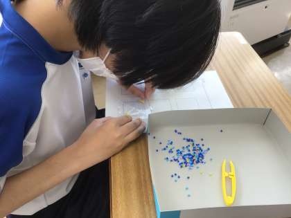 1・2学級生徒がアイロンビーズに挑戦していました。