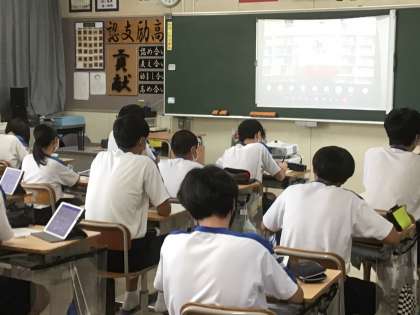 教室では、立候補者の演説を真剣に聞く姿がありました。