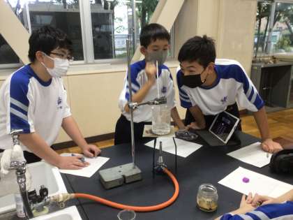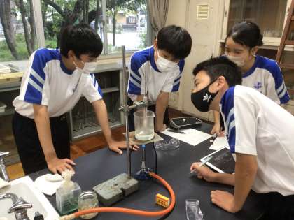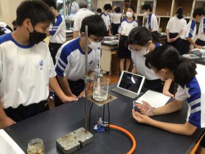 学習用タブレットのタイマー機能を使い、時間と温度を計りながら様子を観察していました。