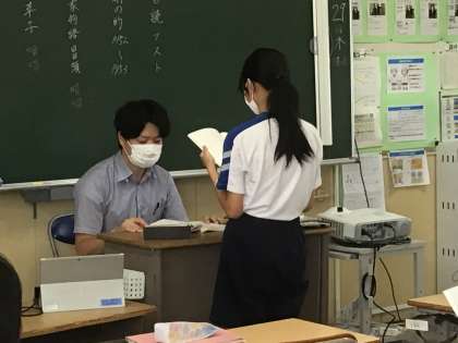 枕草子や平家物語の暗唱テストをしていました。