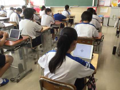 指揮者を中心に歌い方を考えたり、学習用タブレットで各パートのメロディを確認したりしていました。