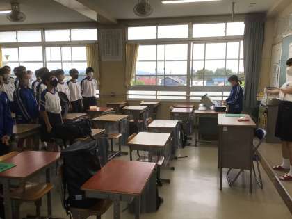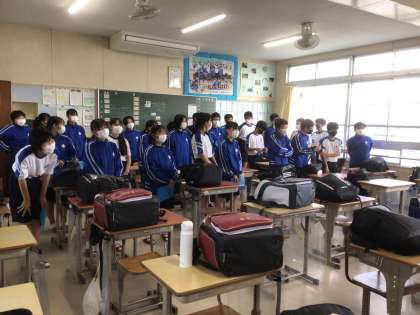 2年生の様子です。 先生の話をニコニコ笑いながら聞いているクラスもありました。
