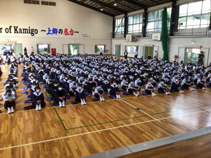 今の3年生が入学から初めて全校生徒が体育館に入って式を行いました。代表生徒の発表、校長先生のお話を聞いて、後期に向けて頑張ろうという気持ちを持つことができたと思います。