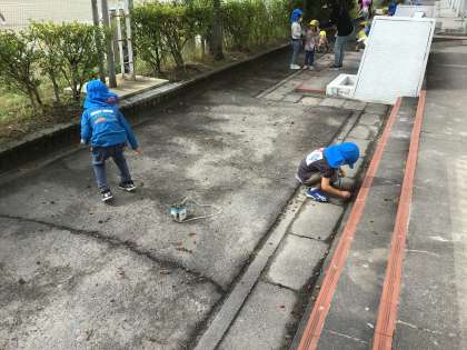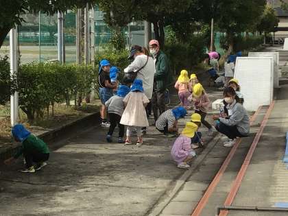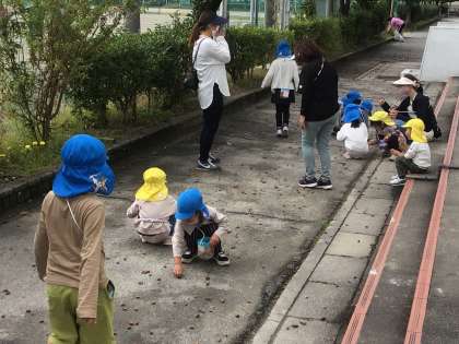 上郷こども園の子たちがどんぐり拾いに来ました。