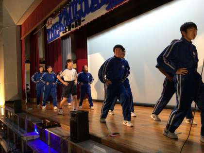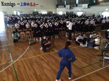 アキレスケンタウルスによる全員体操です。500人が立って一緒に体操しました。