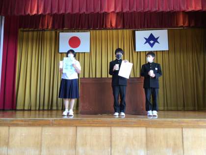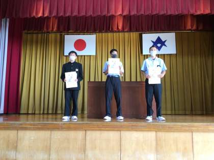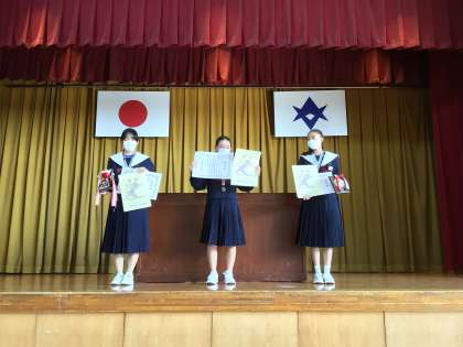 また、夏休みの作文や習字、ポスターでも多くの入賞者がいます。そちらの伝達も行いました。