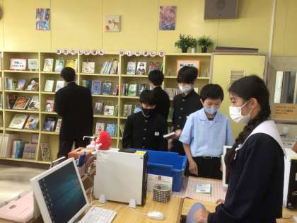 2時間目後の放課に、本を借りにくる生徒が集まってきました。