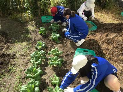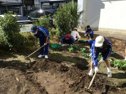 畑で畝づくりに挑戦していました。