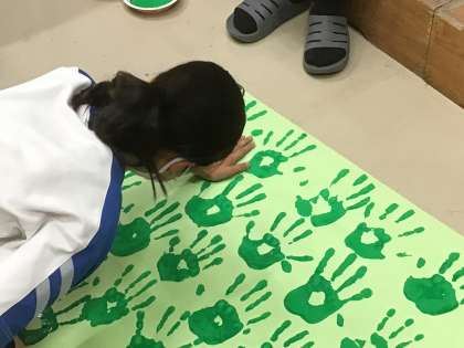 応援グッズを作っていました。
