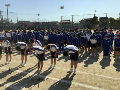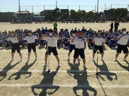 閉会式後体育祭開催向けて頑張ってくれた体育主任に対して、3年生から感謝のセレモニーがありました。