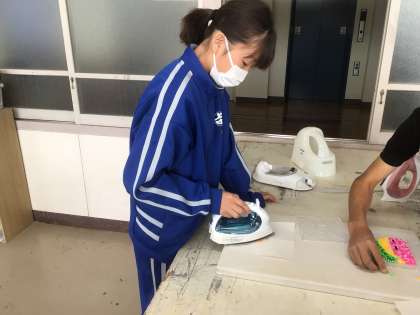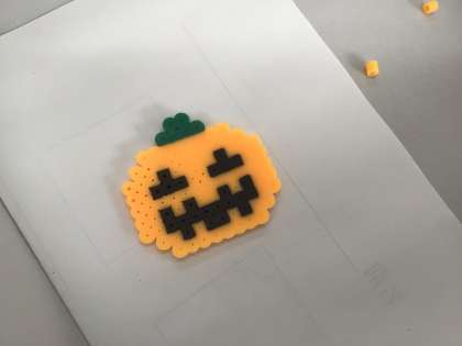 プレートにビーズを敷き詰めたら、アイロンをかけます。