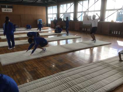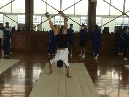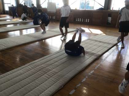 ウオーミングアップの後、マット運動に移りました。