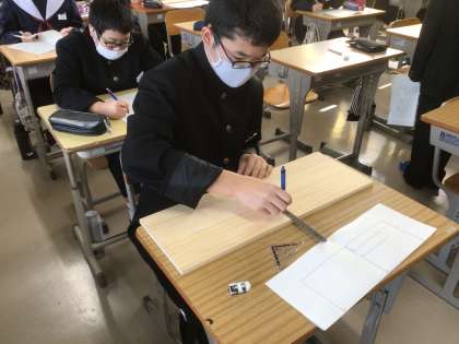技術の時間、設計図が完成したら、いよいよ製作に入ります。