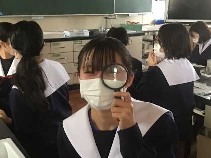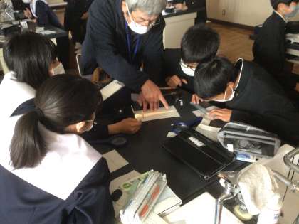 凸レンズに光を当てたり、目との距離を変えて見え方を調べたりしていました。
