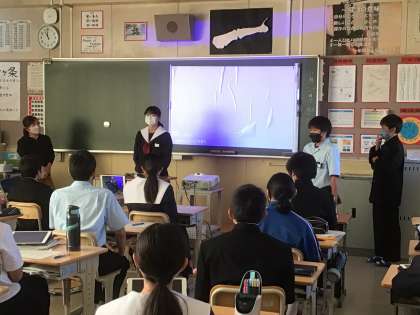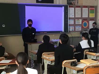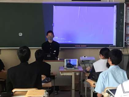 スピーチの様子は学習用タブレットに録画して、振り返りに活用するようです。