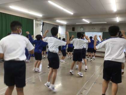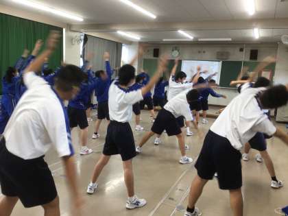 体育の時間、エアロビクスダンスのようなことに取り組んでいました。