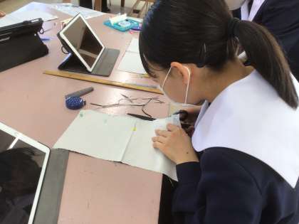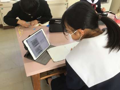 学習用タブレットにある手順を確認しながら、作業を進めていました。