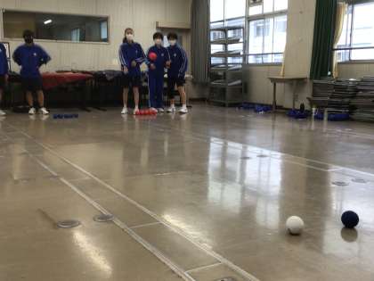 その後チームごとにカラーボールを投げ入れ、いかにジャックボールの近くに置くかを競います。