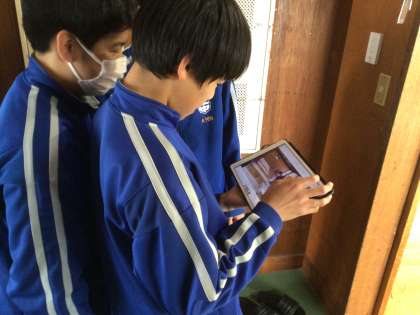 学習用タブレットで動画を撮りながら練習していました。
