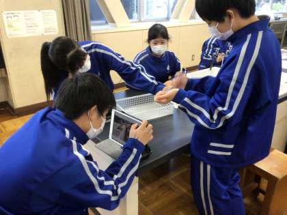 まとめで使えるように学習用タブレットで写真を撮り、記録します。