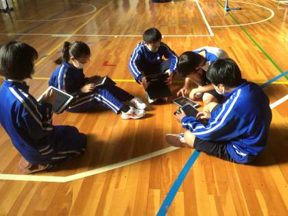 振り返りも慣れた手つきで学習用タブレットに記録していました。