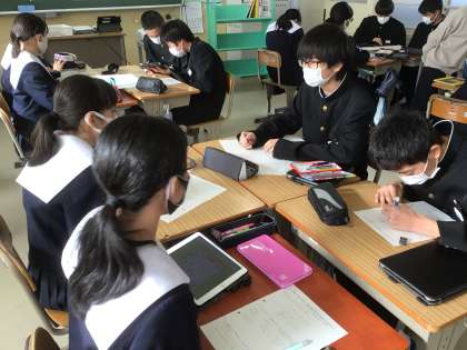 ご当地グルメを考え、外国の方にPRするためのポスター作りについて話し合っていました。