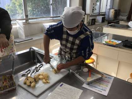 学校の畑で収穫したサツマイモを使い、スイートポテト作りに挑戦しました。