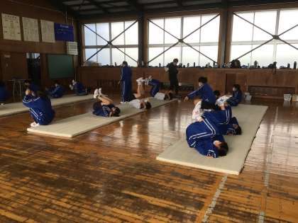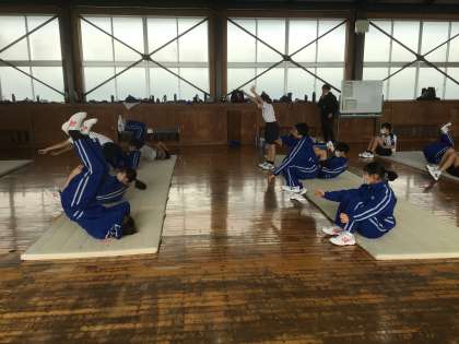 マット運動に必要な要素を取り入れながら、体を温めていました。