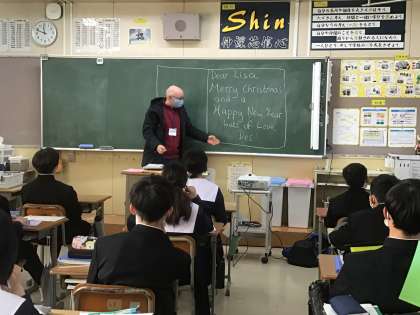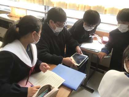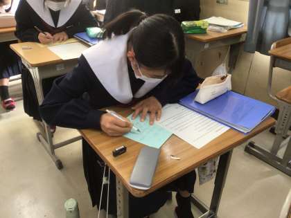 はじめにALTの先生の説明を聞き、書きたい文例を選びました。