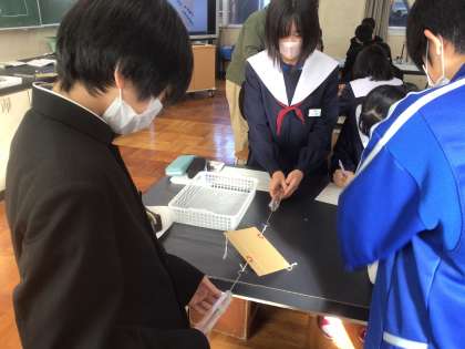 2方向から異なる力で引っ張って、手を離すと・・・。