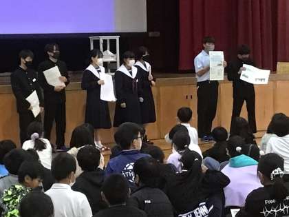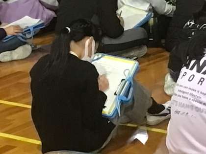 生徒の発表を聞きながら、一生懸命にメモをとる児童の姿が印象的でした。